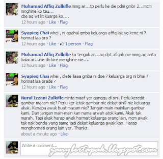 Sedap-sedap aku tengah facebook, angin elok baik, bawah takat didih lagi, ditambah pulak cuaca nak hujan, angin-angin memang tengah tiup sepoi-sepoi language. Tiba-tiba aku nampak dekat wall aku ada laa beberapa budak comment dekat satu picture yang aku memang kenali rupa parasnya.